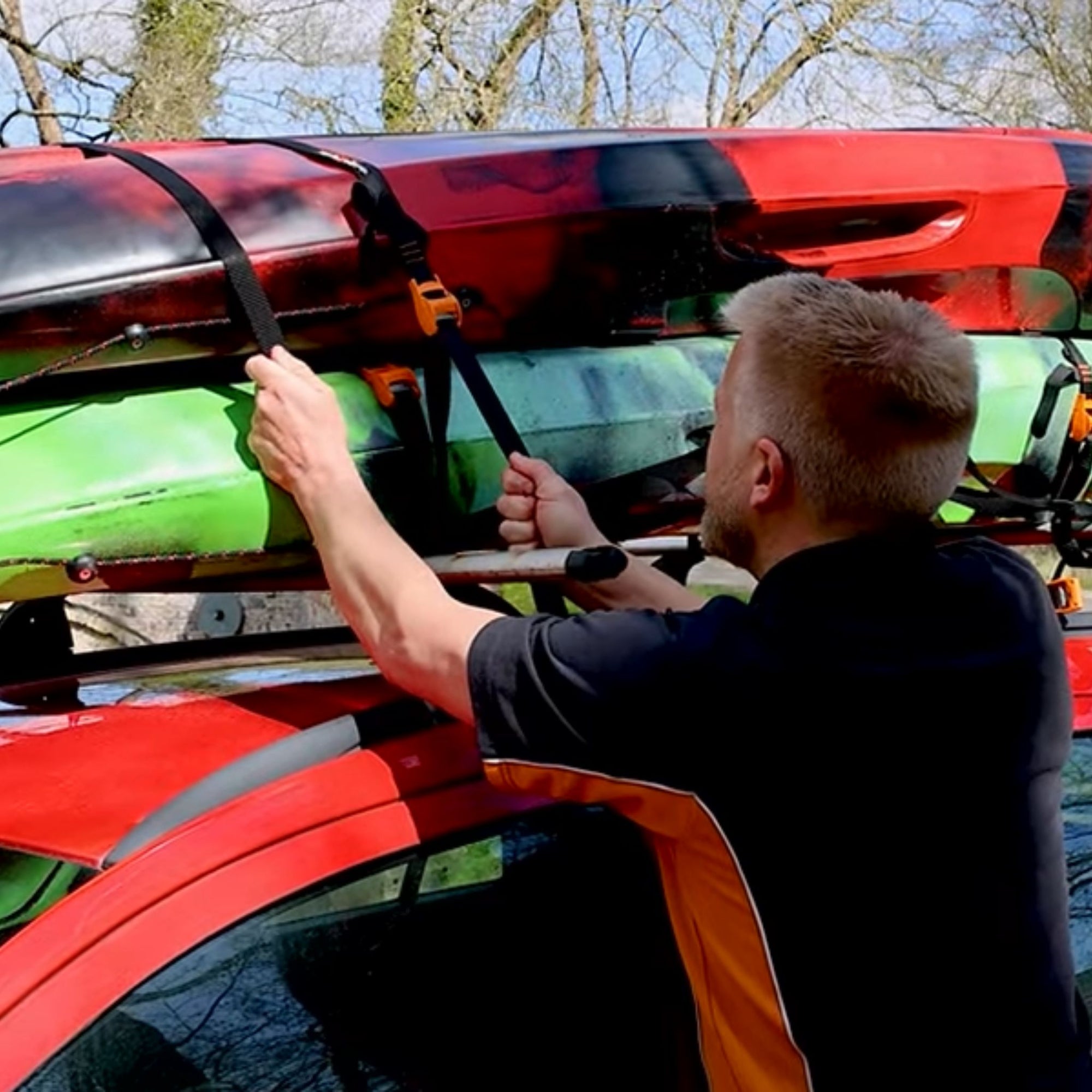 Made from strong nylon material, these tie straps provide a simple and secure way to fasten your kayak to roof bars.